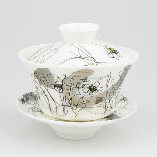 This Chinese tea set comes with a tea cup and a plate. This tea set is designed with attractive narcissus prints for an exquisite touch. This well-designed tea set is great for household use.