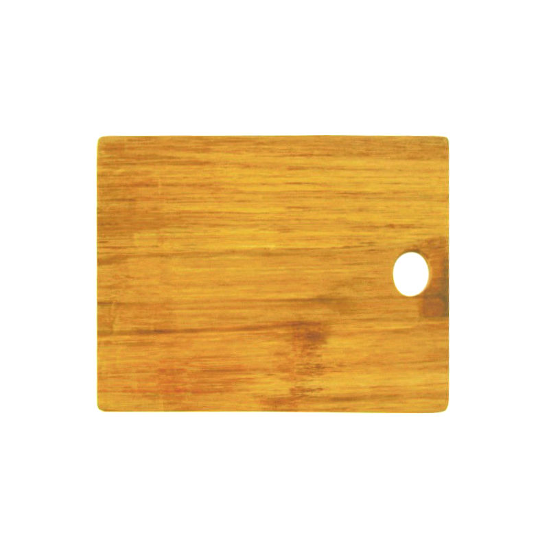 This chopping board is made of wood and comes in a rectangular shape. It is adorned with natural wood grain patterns and has a round hole for hanging. The chopping is safe for handling food and flaunts a high durability.