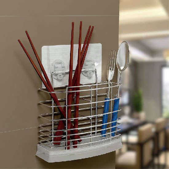 This is a kitchen basket suitable for wall mounting. It is a great choice for storing assorted chopsticks and cutlery. The robust metal material promises an extended service life.