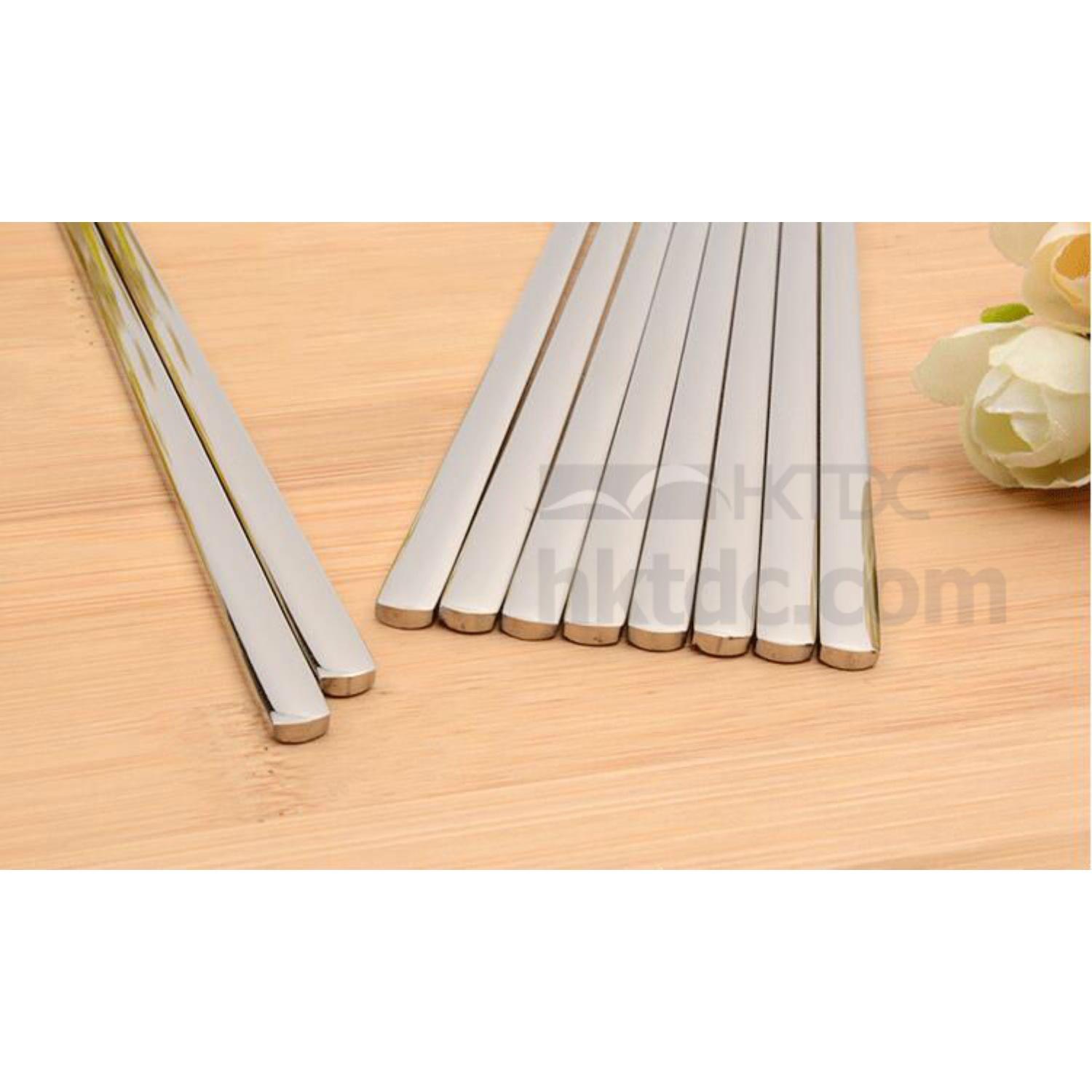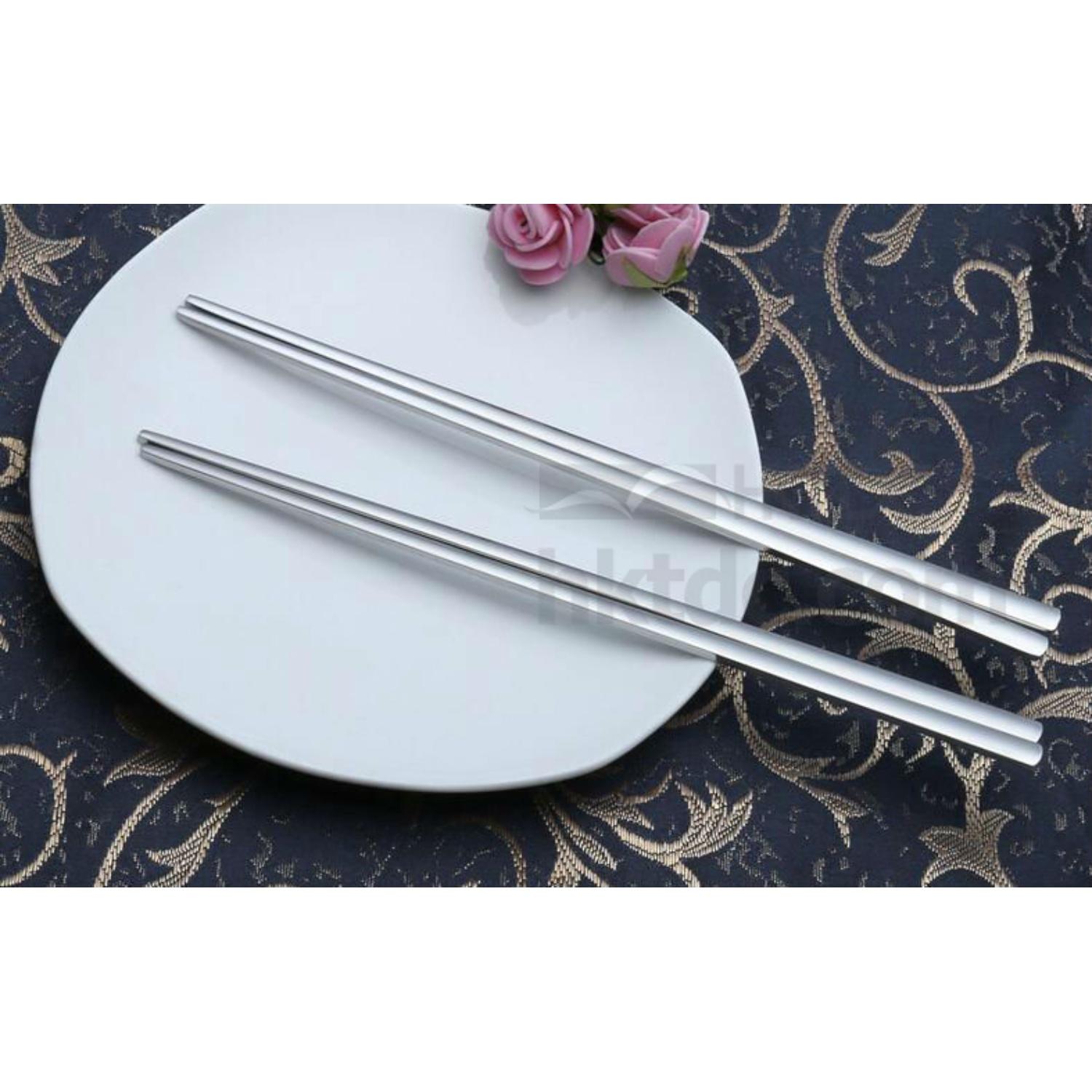 Taste the delicate spice in your favorite eastern cuisine using this pair of stainless steel chopsticks. Holding an ultra-smooth exterior, this one is complemented with a flat contour to emphasize its decent structure of a metallic sheen. Available with customized sizes and shapes, it is a wonderful accessory to your dining table.