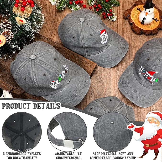 • Premium Material: Our christmas hat is made from 100% cotton&polyester, breathable and skin-friendly; soft; durable; lightweight and easy to wear. Our christmas baseball hat is a great holiday party accessory and nice for merry christmas photo shoot