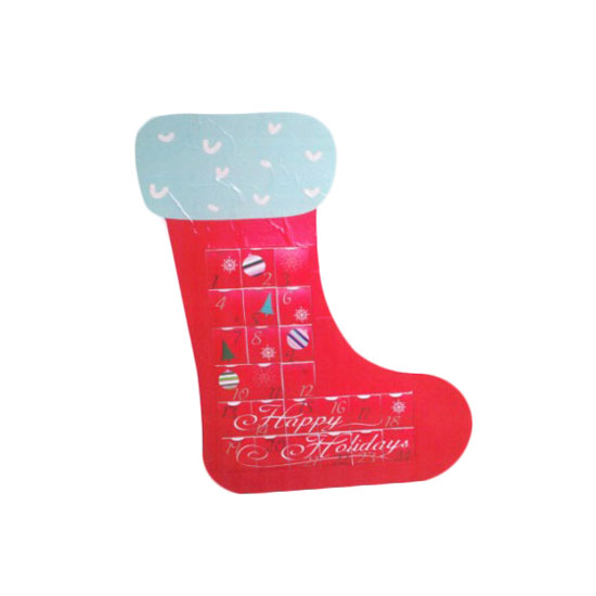 This Advent calendar boasts a cute and unique design. It comes in a Christmas stocking shape with colorful patterns. Add a festive touch to your home décor with this item.