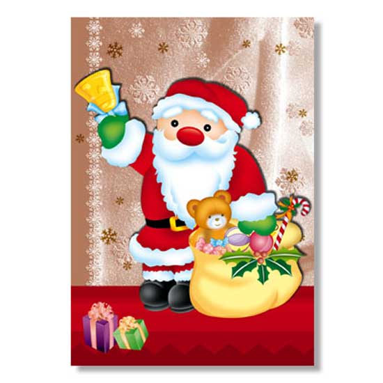 Here comes a Christmas card finely printed with quality paper for vivid colors. The card cover boasts a white-beard Santa Claus who waves a bell and carries a bag full of gifts. Write down your best Christmas blessings on this beautiful card and send it to your friends and family.