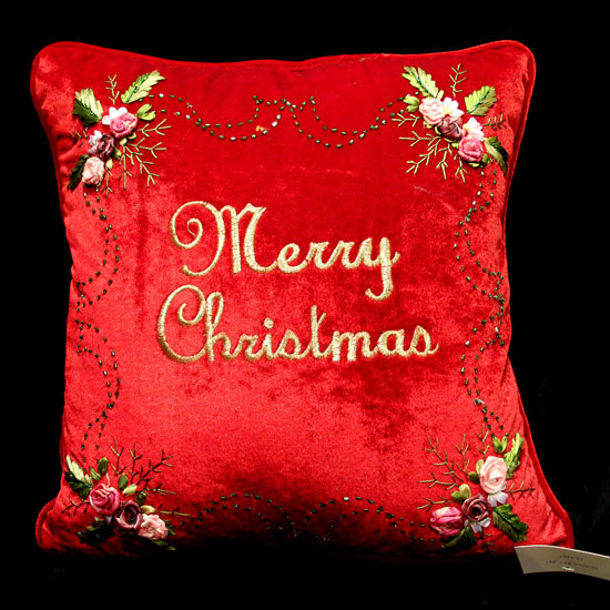 This splendid cushion features a festive theme. Decorating this cushion are rich embroidered flowers and beads. Soft to the touch with a silky appearance, this cushion is an artful addition to your home decor.