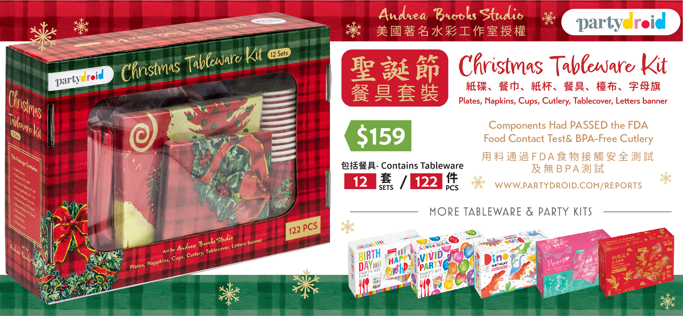 122Pcs Christmas Tableware Set + ‘Merry Christmas’ Letters Banner