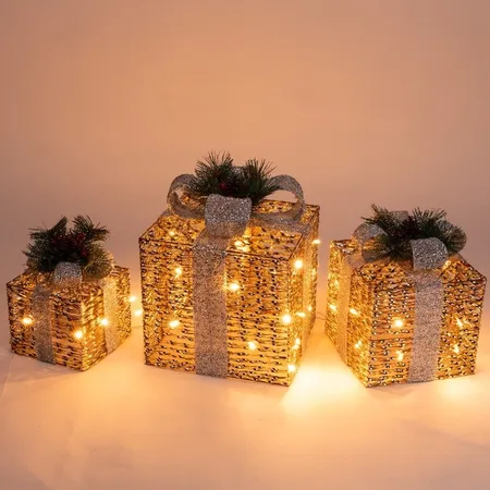 Set Of 3 Pre-lit Christmas Decoration Gift Boxes