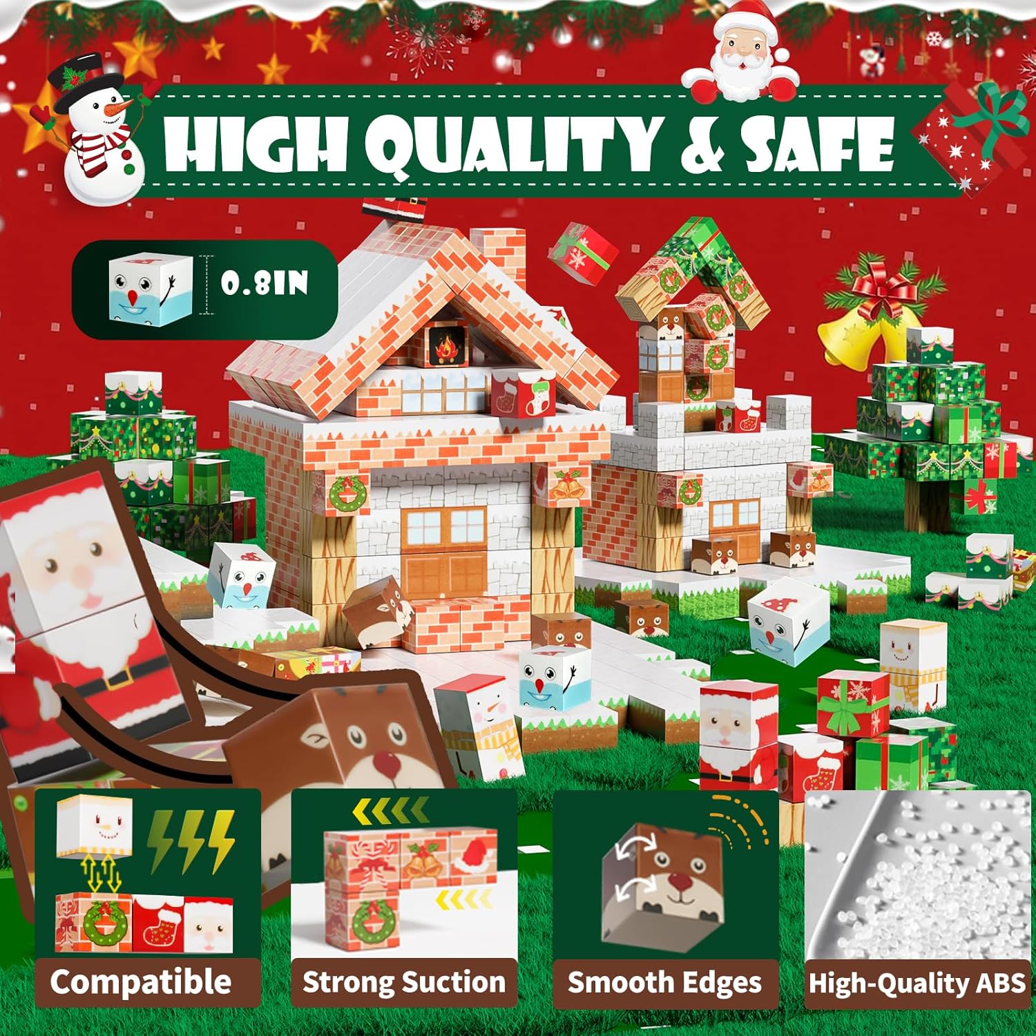 Crafted from high-quality ABS material, these 100-piece magnetic cubes are both reliable and vibrant. Featuring rich patterns inspired by Christmas themes, kids can create enchanting Christmas villages, delightful snowmen, or towering Christmas trees with ease.