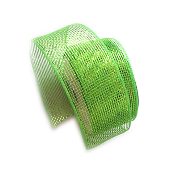 This is a roll of mesh ribbon in lime green. It is an ideal choice for a Christmas decorative material. This roll of well-made ribbon is durable and flexible.