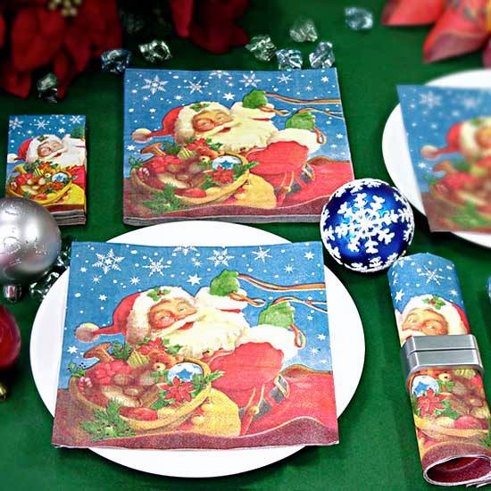 This is a set of paper napkins featuring five different sizes and the theme of Christmas. Each napkin has 3 layers, which are strong and soft. This set of paper napkins is an ideal item for Christmas parties.