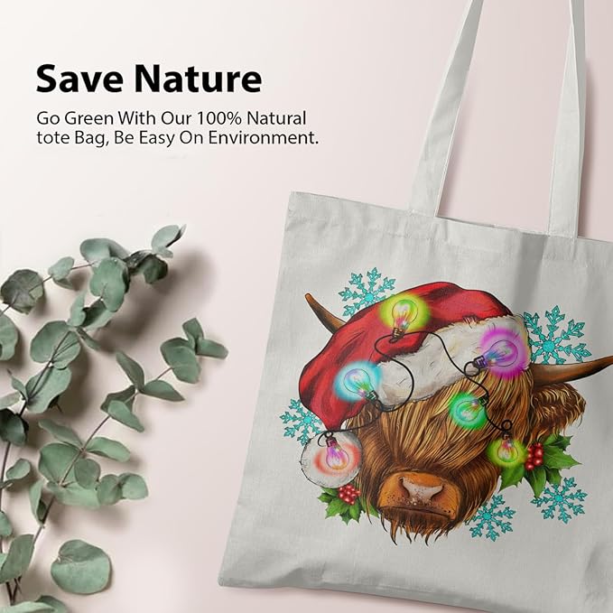 Christmas Santa hat Highland Cow Canvas Tote Bag