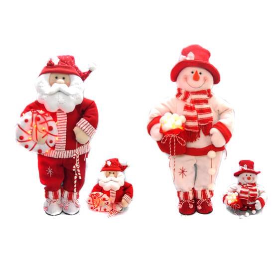These Christmas snowman set consists of a big snowman and a small one. The set is a standing Santa or snowman with lighting decoration. Quality fabric and synthetic cotton are used to manufacture these Christmas snowman and Santa.