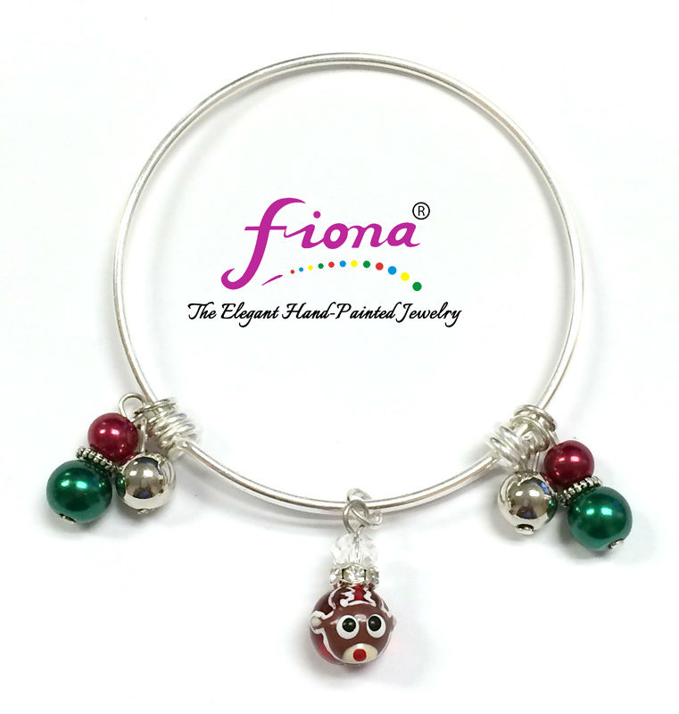 Christmas Treasure Bangle (Adjustable) - Painted Red Reindeer