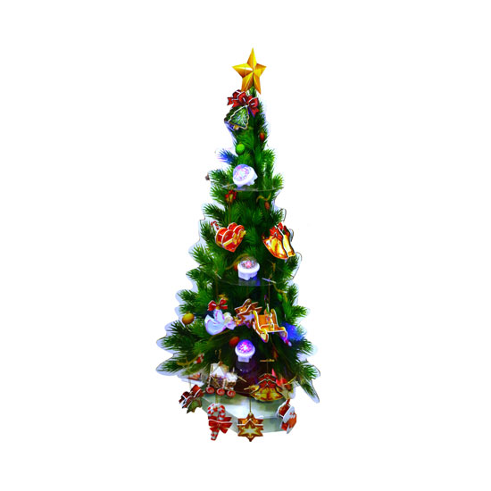 This 3D Christmas tree decoration looks just like a real one. It is painted with bright colors for a festive flair. Little ornaments are hung from the tree to create the most attractive look.