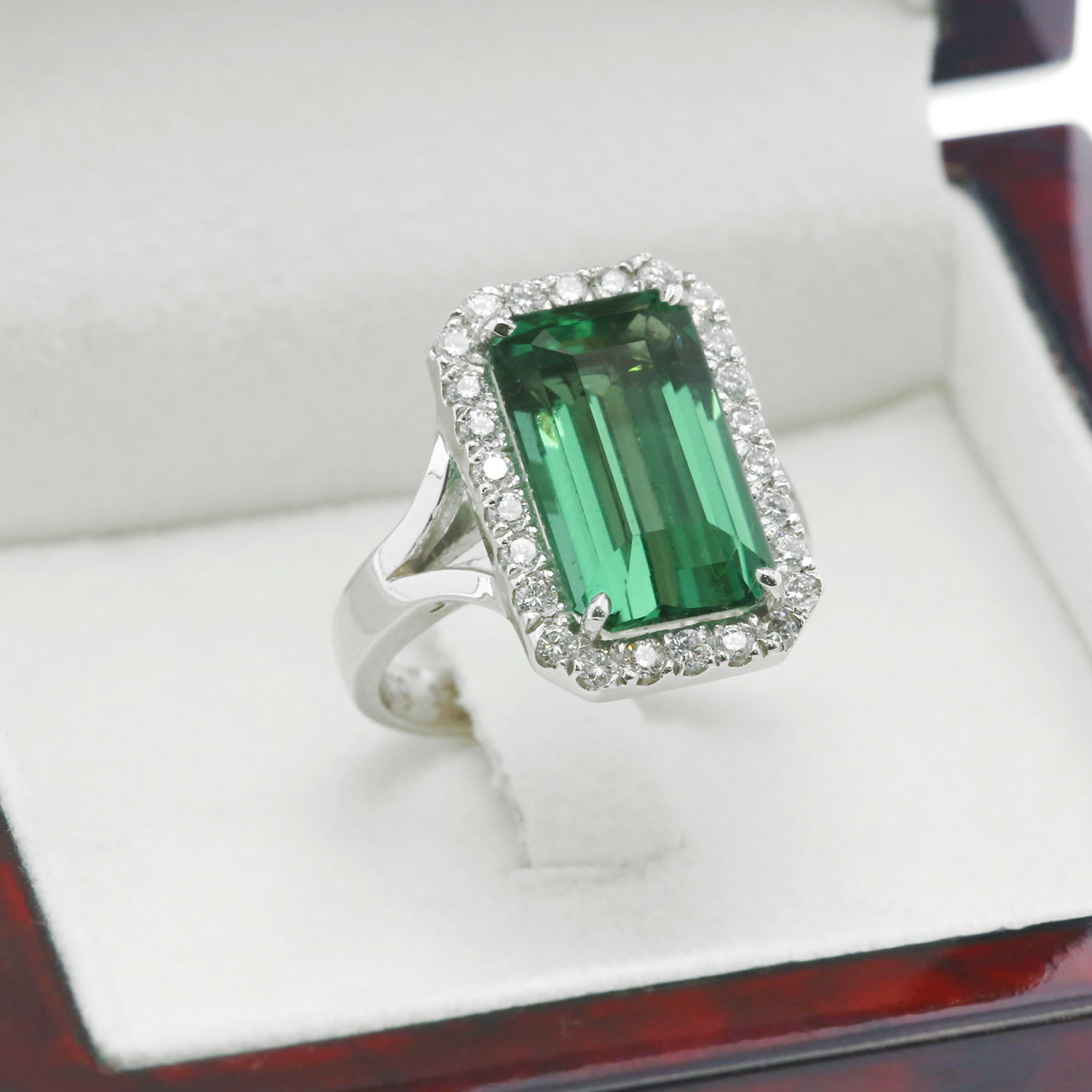 Chrome tourmaline with Diamonds and White Gold