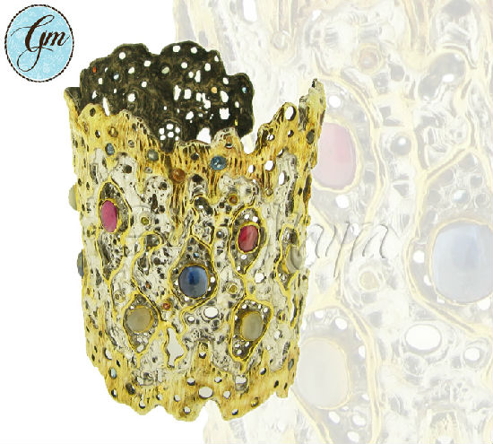 Yellow chromed silver with rubies, kyanite and blue topaz