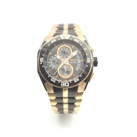This finely manufactured chronograph watch precisely indicates the time. The well-designed watch comes with a fashionable appearance. It is sturdily constructed for a long service life.