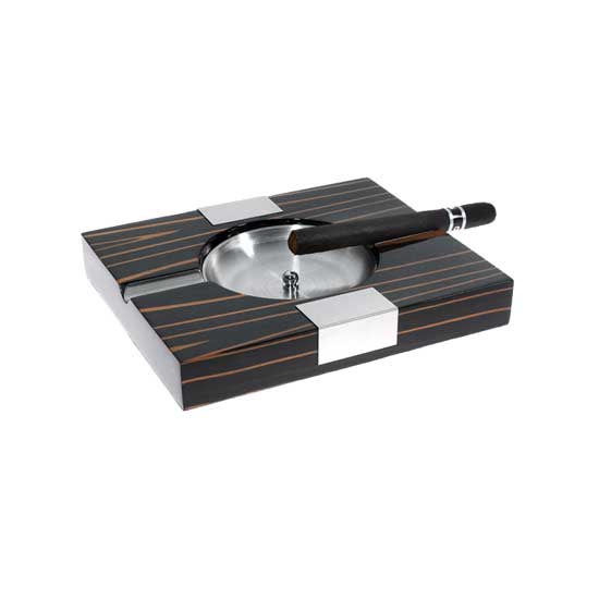 This deluxe cigar ashtray features a wooden-like appearance with orange lines. The silver-hued design adds a contemporary touch to the look. This refined cigar ashtray is a luxurious gift for friends.