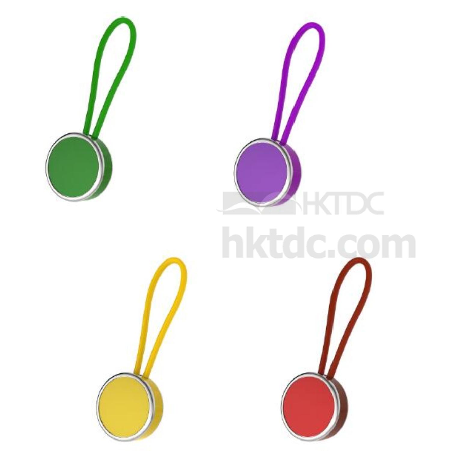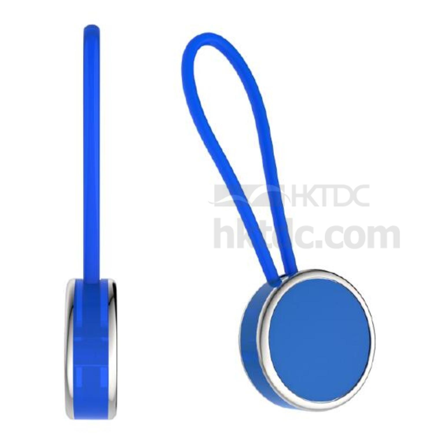Circle Shape Metal Keychain with Plastic Strap