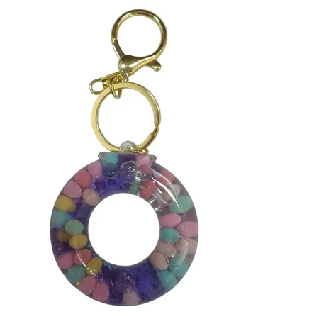 The design focuses on creating a visually appealing effect. The circular shape is a classic and simple form that is easy on the eyes. The combination of the translucent material with colorful beads inside forms a striking contrast. The beads can move as the keychain is jostled, creating a dynamic visual experience that catches the light and draws attention, appealing to those who appreciate eye - catching and novel accessories.