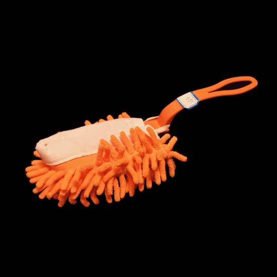 The pictured cleaning brush comes with a curved handle for easy holding. The wide brush surface is great for cleaning large surfaces. Accented with cloth bristles, it is great for gentle cleaning.