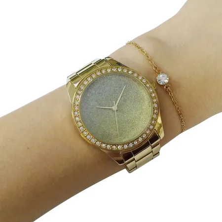 Clear Czech Stones Glitter Dial Women Fashion Watch With Stainless Steel Band