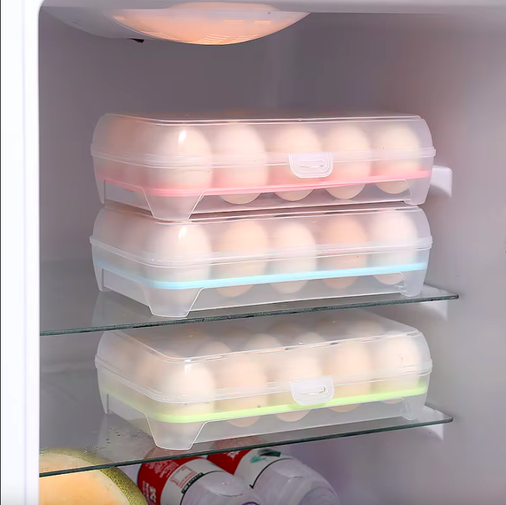 Clear Plastic Eco-Friendly Sustainable 15 Grid Egg Storage Box Kitchen Refrigerator Egg Organizer Containers Storage Bins Boxes