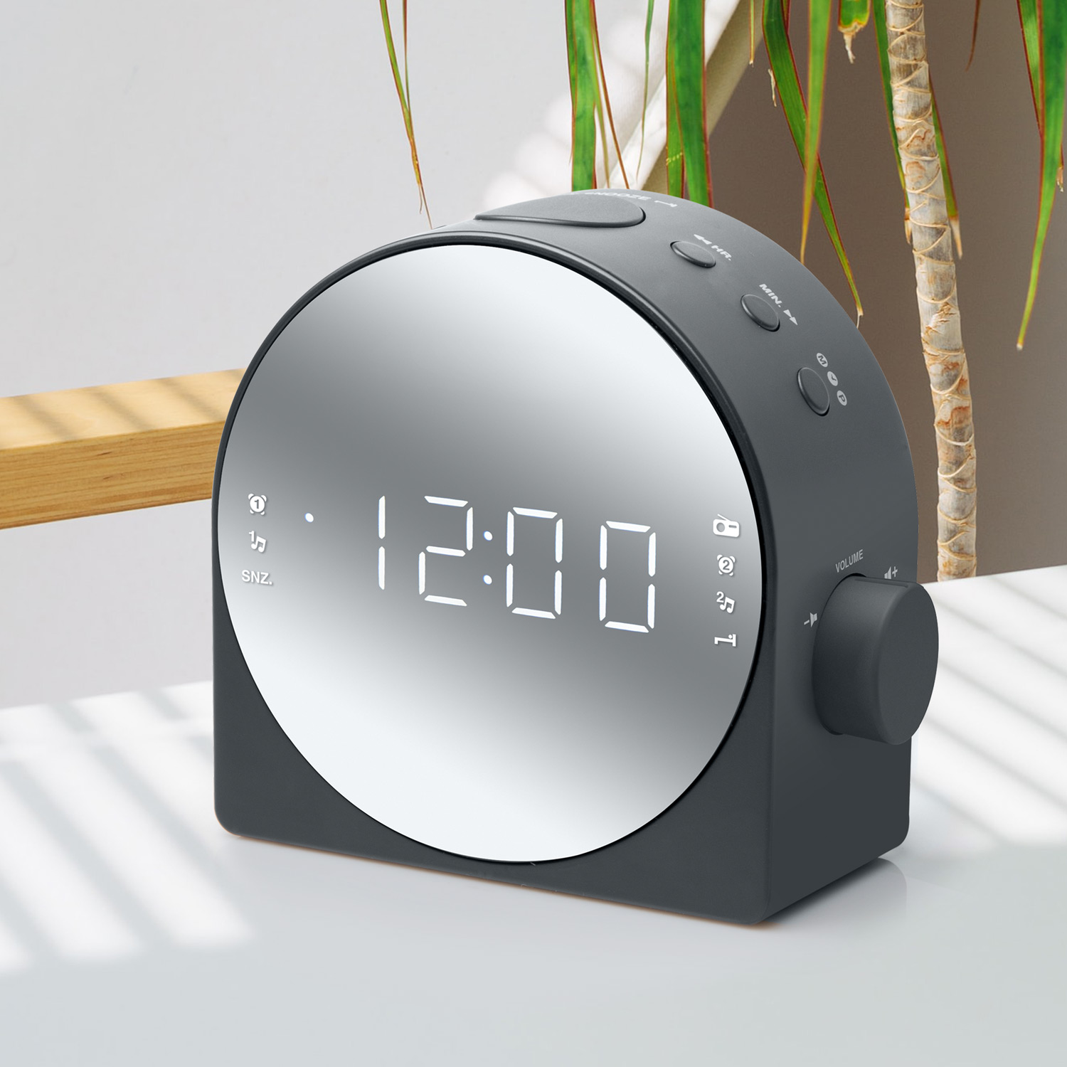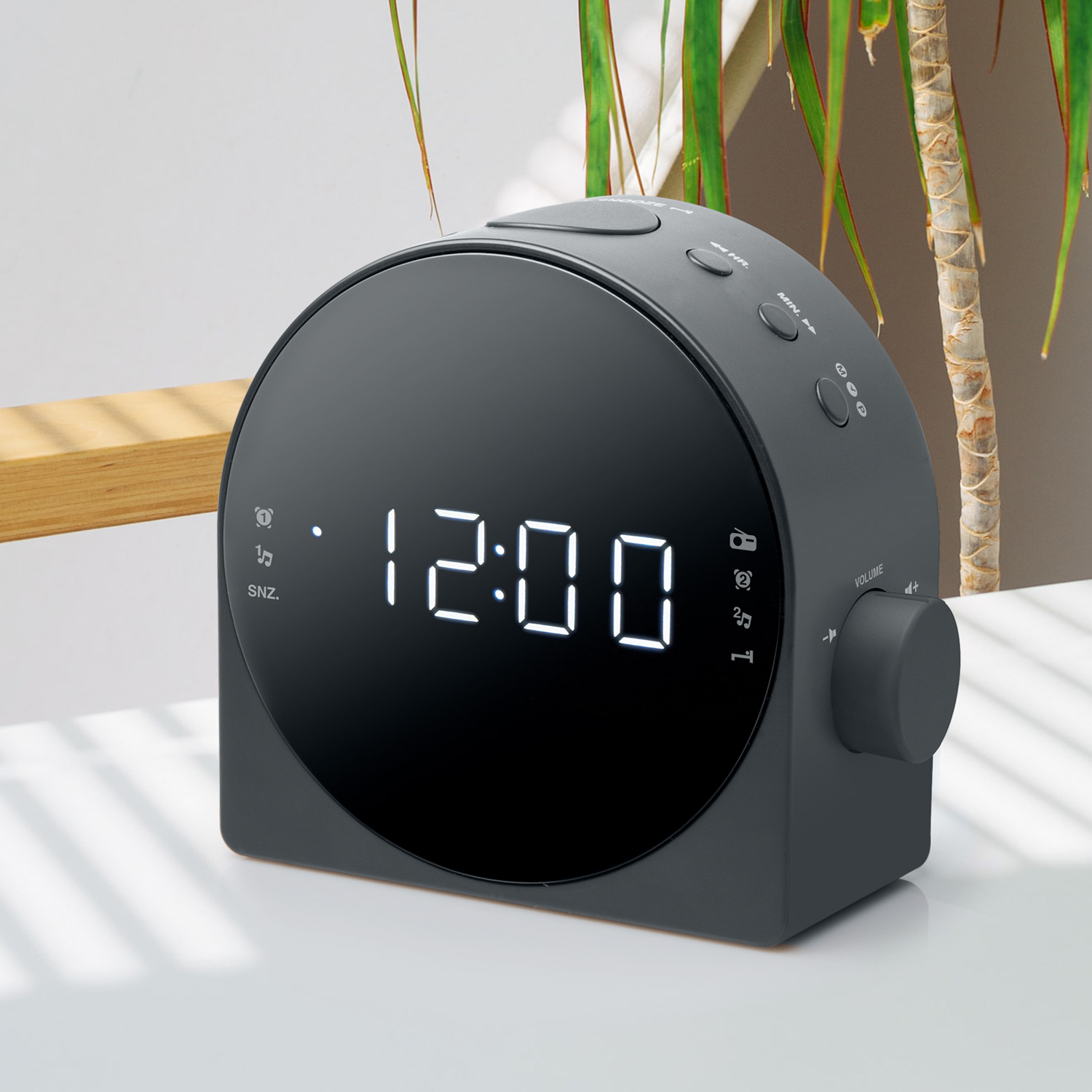 - Dual alarm, wake to buzzer or radio