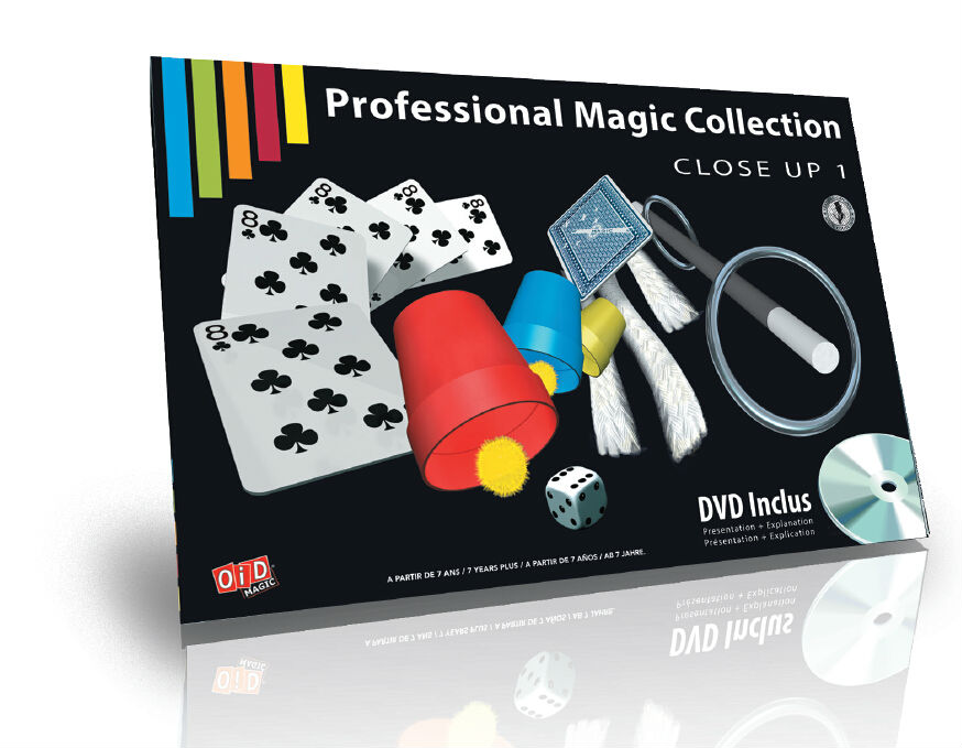 6 introductory accessories to get started. Including telepathy, Cups and Balls, Svengali Cards, Cameleon Cards, The Magic Rings, Magic Ropes. An interactive DVD included with demonstration and explanation. Also Instructions included. Suitable from 7 years.