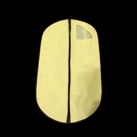 Shown here is a garment bag made of non-woven fabric. The zipper closure at the front makes it handy to use. A transparent window is added to allow easy identification of clothes.