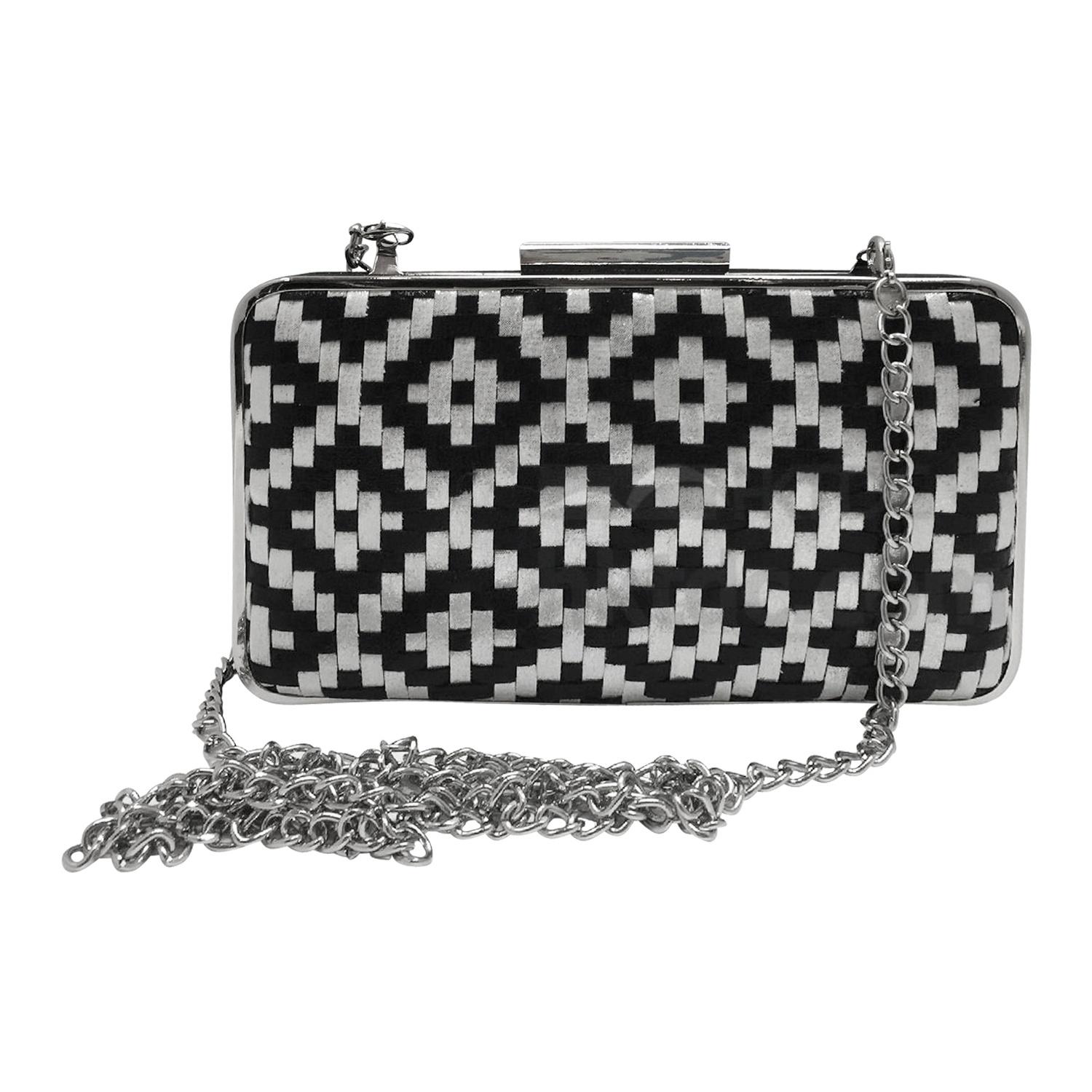 Impeccably finish your entire ensemble with this clutch handbag for a refined look. The stylish grid patterns over the bag effortlessly add a modish accent to your ensemble for a sleek touch, while the interior effortlessly keeps your iPhone, key clutter and pocket mirror safe and sound. It further comes with a sturdy metal chain strap to ensure comfortable and convenient carrying throughout the day.