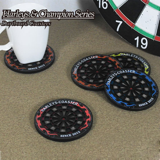 This is a coaster set that comes with 4 pieces. In a dartboard pattern, these coasters are fun and unique. These coasters are made of high quality material for durability.