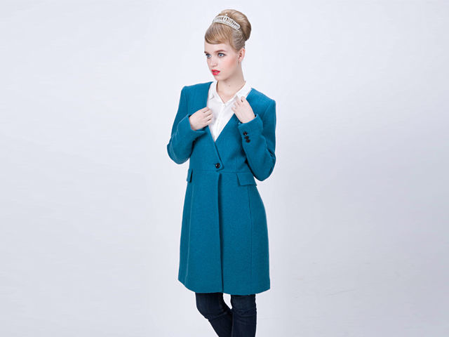 Ladies wool coat with V neck;