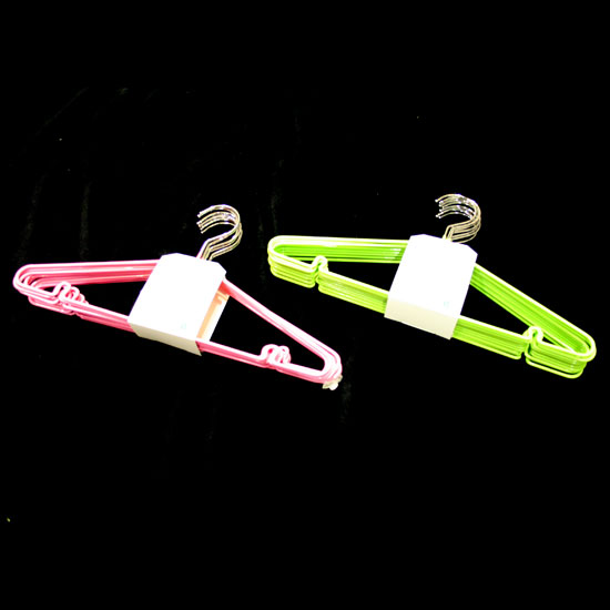 Shown here are garment hangers made of metal wires. The solid hangers are plated in silvery and sharp colors with a glossy touch. The hangers are designed with hooks for socks and ties.