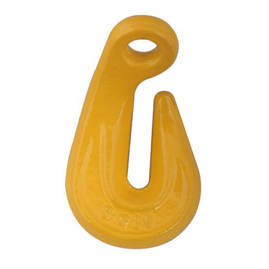 This is a special hook designed to work with chains and straps. The body of the hook is coated in sharp yellow to showcase a modern style. The tough structure is able to carry a range of loads.