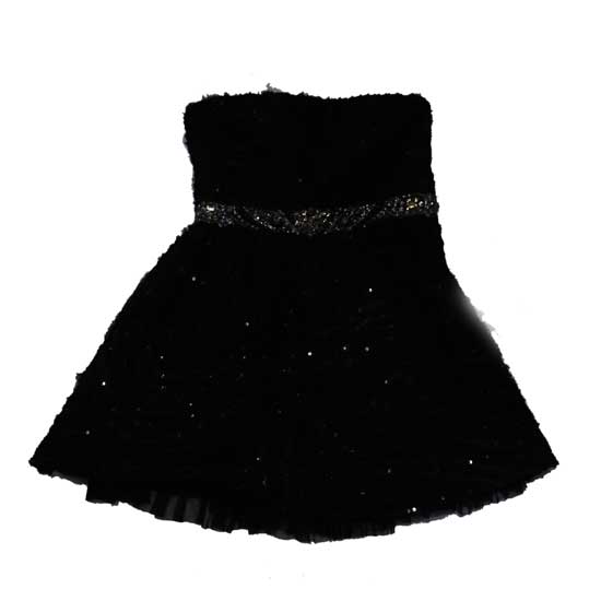 Photographed is a cocktail dress designed in an all-black tone. The blend of cotton and silk is soft and comfortable on the skin. The mini dress stuns the show with the ultimate elegance.