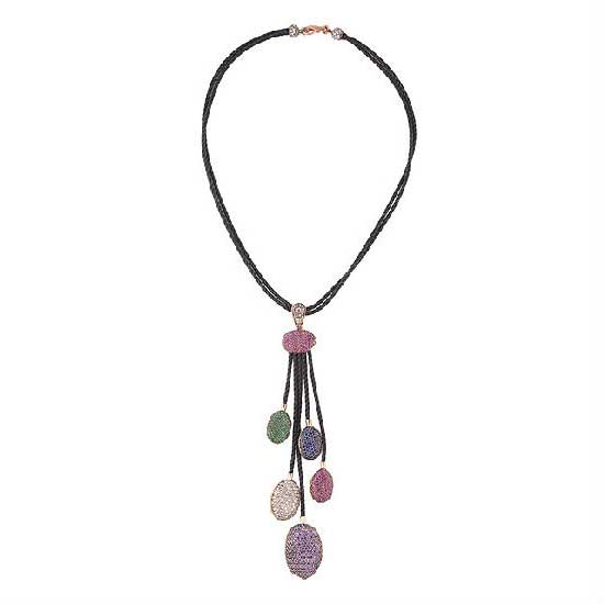 This interesting necklace comes with coco decorations dangling at the front. The alluring coco decorations are enhanced with mixed color zircons for a sparkling touch. This well-designed necklace is easy to mix and match.