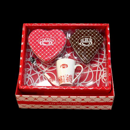 This cocoa set comes with two boxes of cocoa powder, a cup and a spoon. The cocoa powder is from South America. Nicely packaged in a red and white box, this cocoa set makes a sweet gift for friends and families.