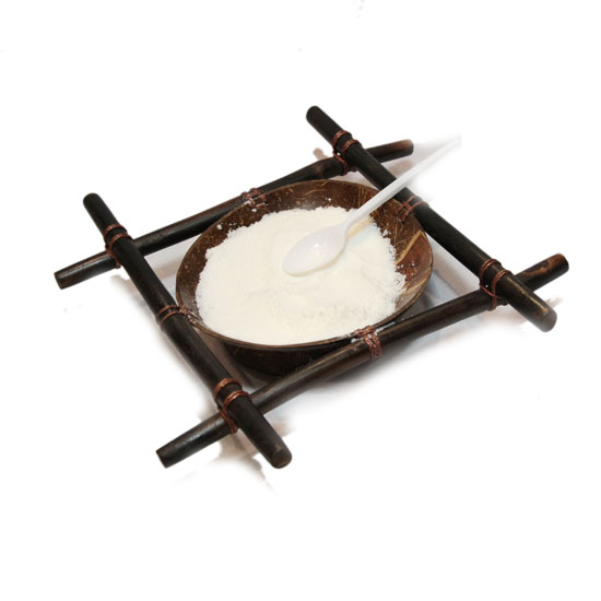 Shown here is some good-grade coconut milk powder. You can add this powder to your dishes or desserts for a coconut taste. This coconut milk powder is an indispensable ingredient for preparing Southeast Asian cuisines.
