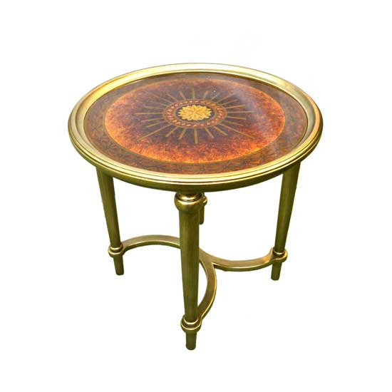 This coffee table comes with golden stands and an orange-and-brown surface. It is made of high-quality metal and glass with a glossy finish. With an exquisite and elegant appearance, this refined coffee table makes an ideal addition to your room.