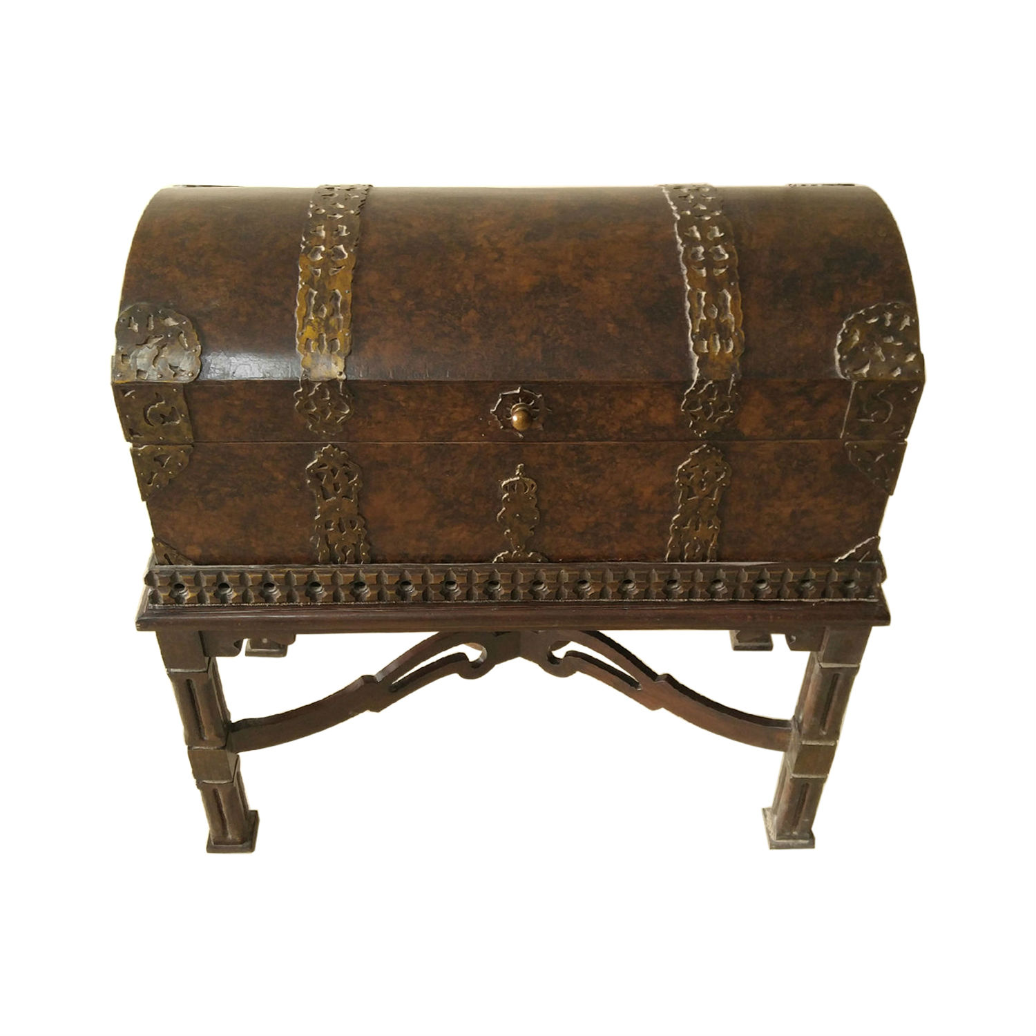 Manage your daily home essentials with this coffer trunk. This storage coffer trunk showcases handsome coffered details completed with a beautiful antique finish. It features a curved top lid that can be lifted open to gain access to oodles of storage space.