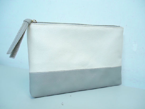 Ladies color block PVC cosmetic bag.