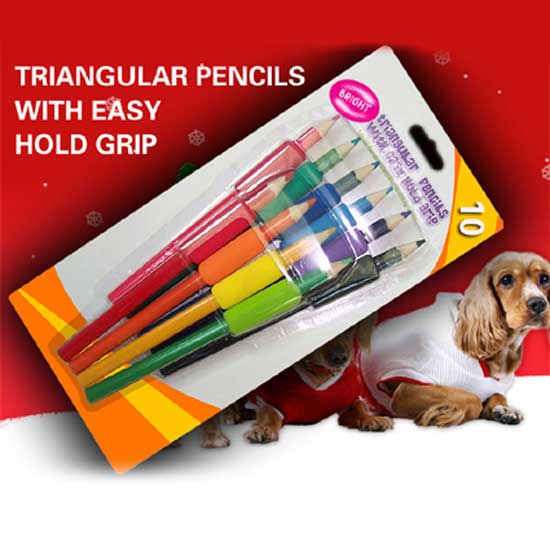 Featured is a color pencil set including pencils in 10 frequently used colors. The triangular barrels and the included holding grips enable easy gripping and stable holding. These color pencils allow kids to have better control when coloring.
