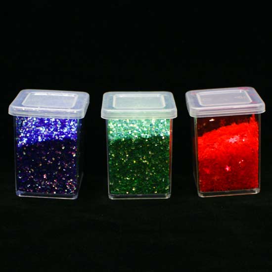 This is a box of glitter powder in sharp colors for making any decorations eye-catching. They can be easily applied with glue. The shiny powder is perfect for greetings cards, Christmas ornaments, printing inks, cosmetics, packaging, etc.