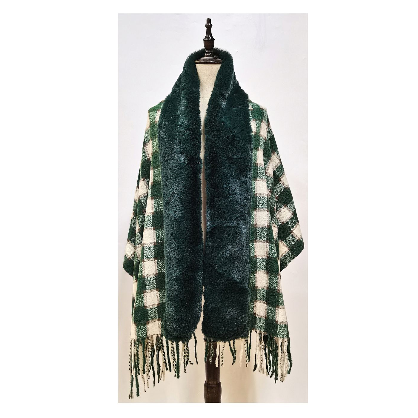 This is a checker pattern with fringe polyester material lady poncho perfect for the winter season.