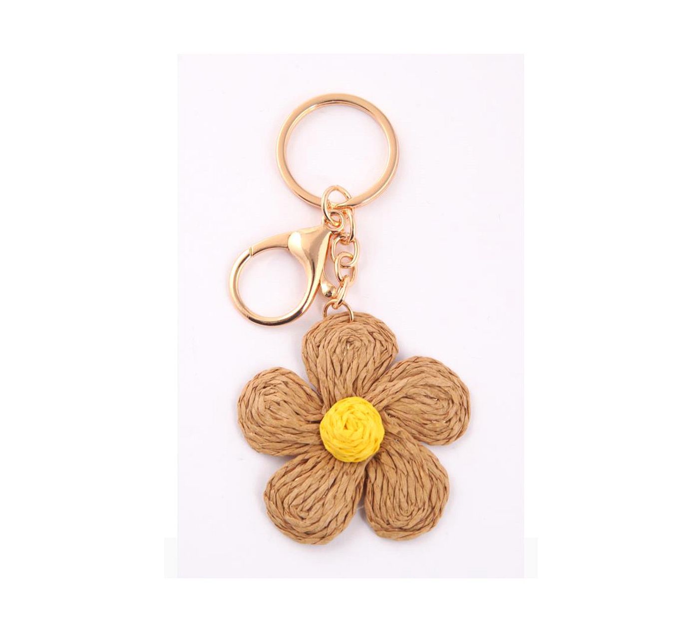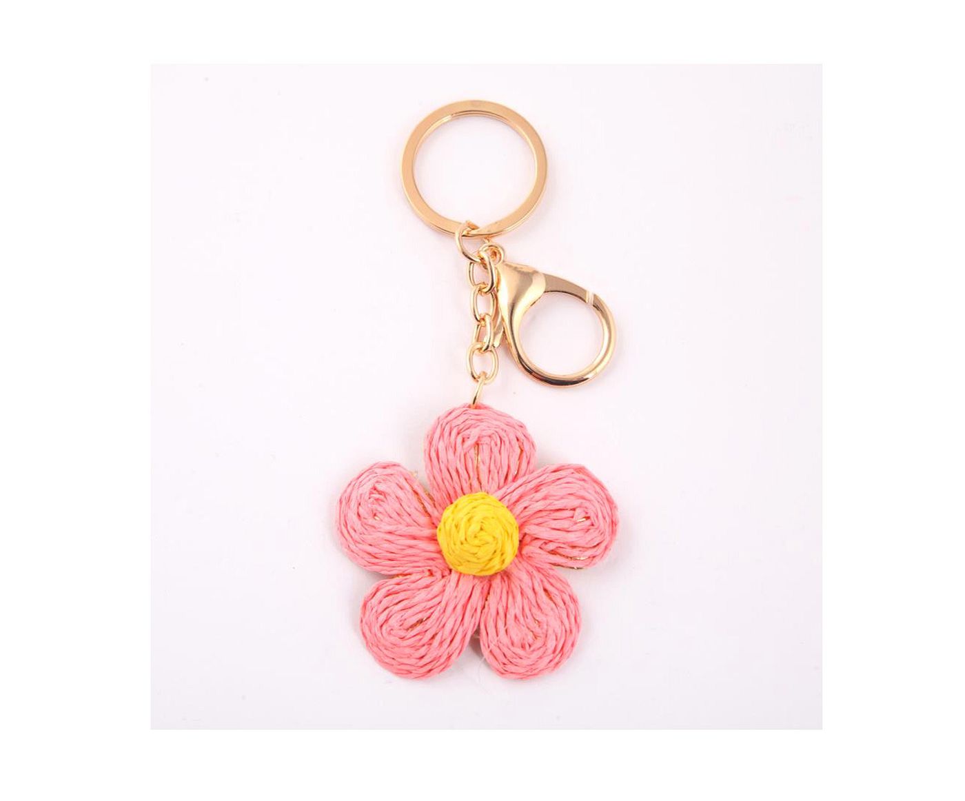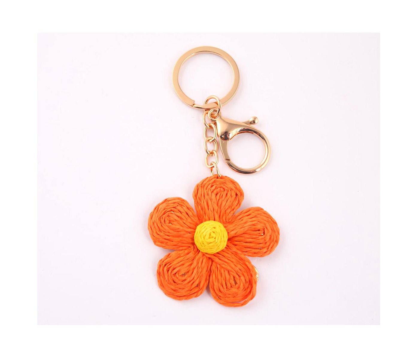 As shown is a high-fashion flower weaved pattern golden plated key chain.