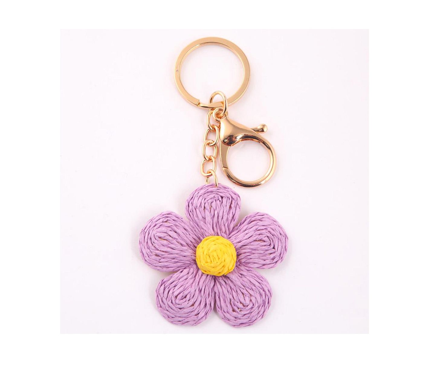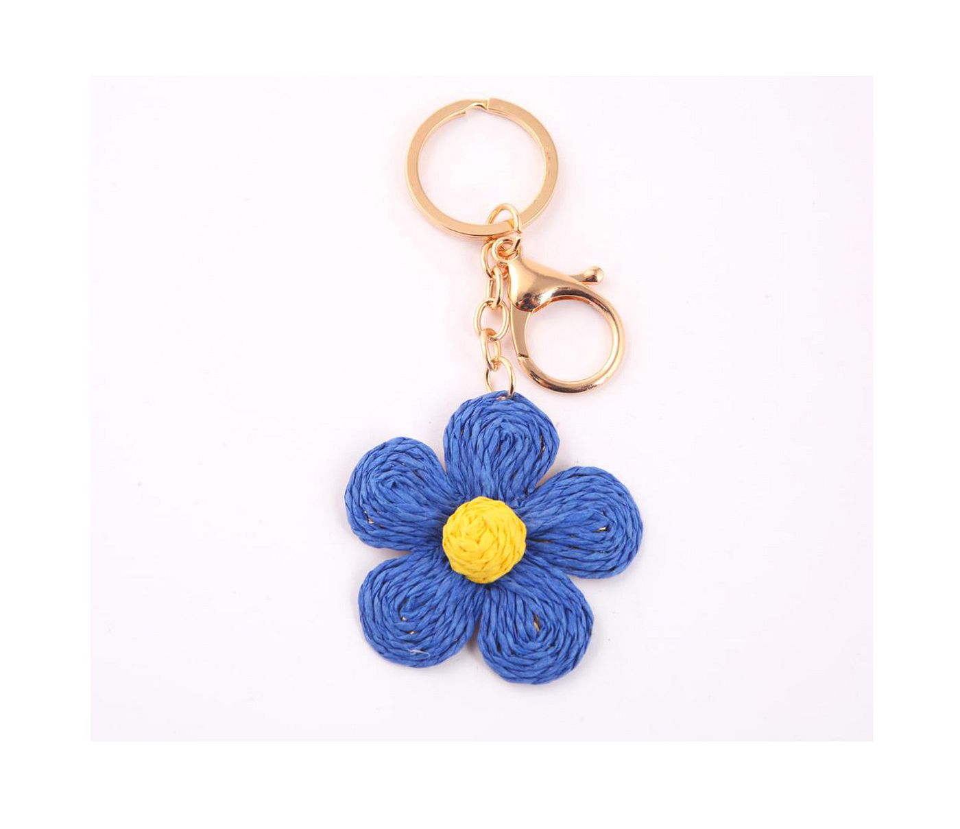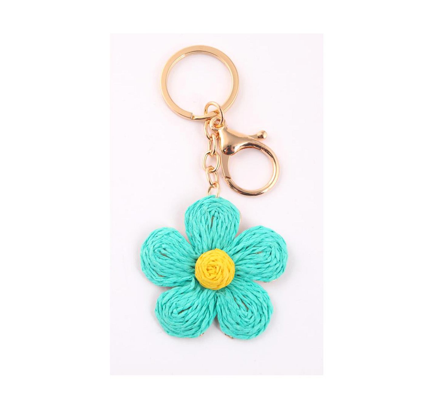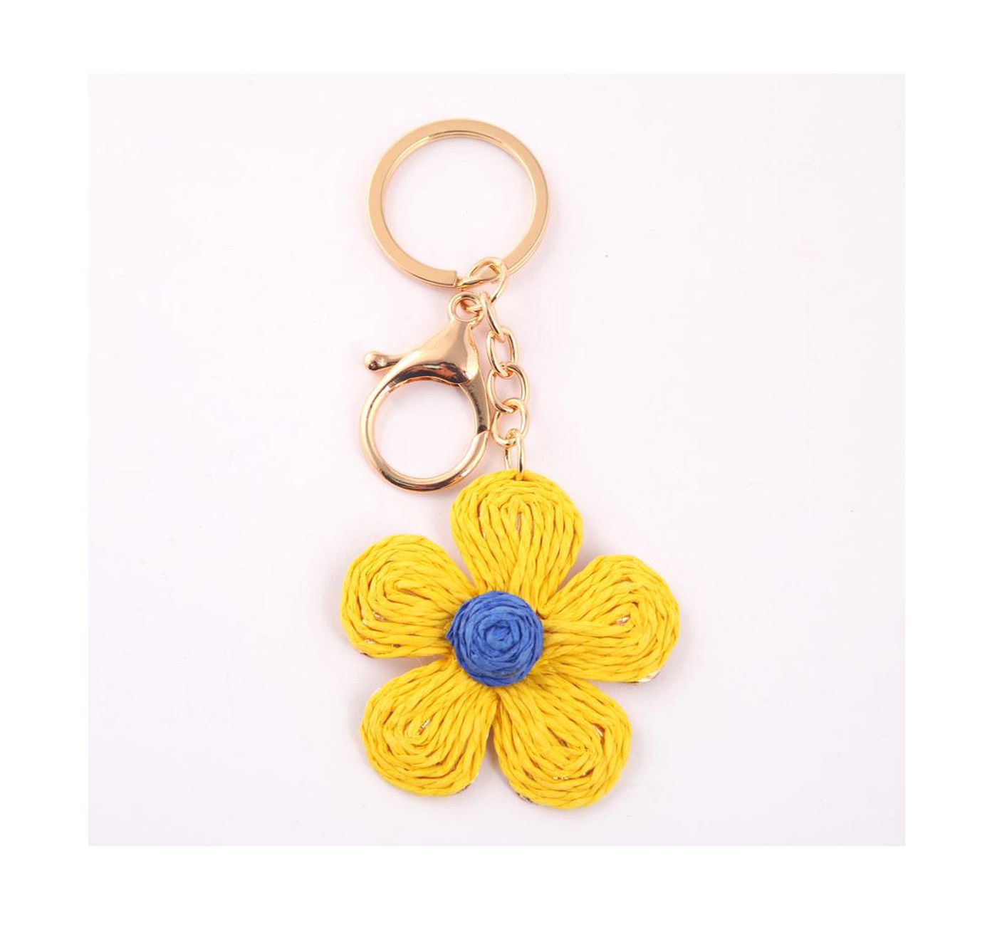 As shown is a high-fashion flower weaved pattern golden plated key chain.