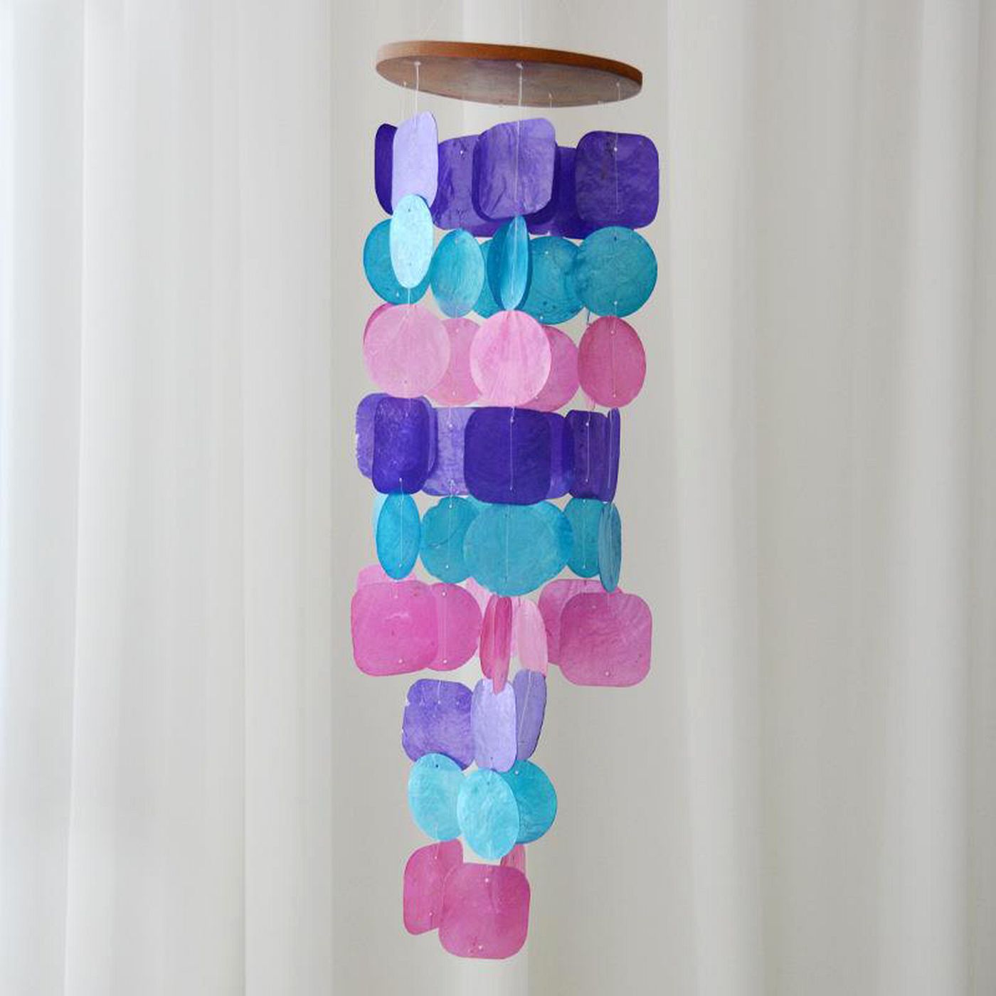 As shown is a colorful style wind chime with shell parts material.