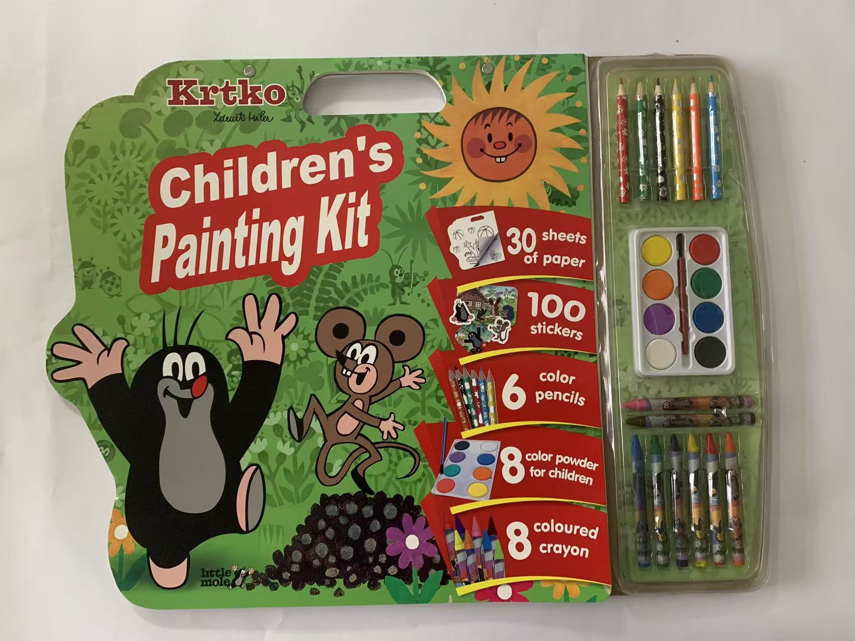8 color crayon with wrap+8 ink+ brush pen+ 6 pencils(1C prin) in blister