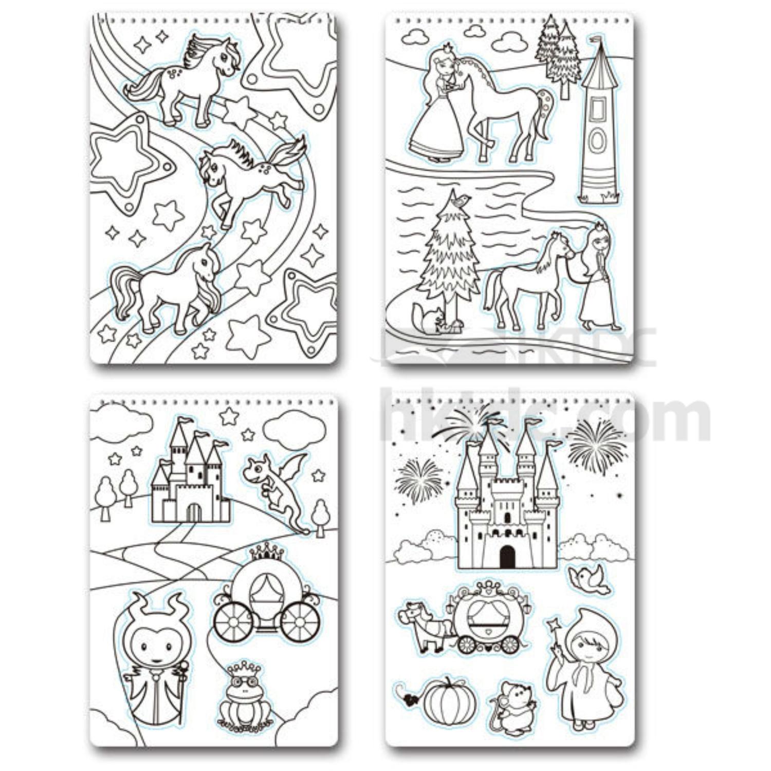 Mesmerize your little one using this coloring sticker book. Topped with a bind design, it demonstrates a standard A4 size for easy holding. Bringing fun and entertainment during road trips or travels, this one is depicted with adorable illustrations from various classic tales and four markers for convenient use.