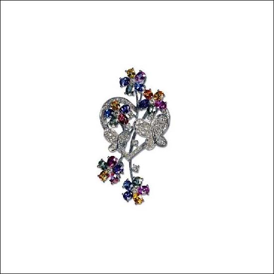 - Brooch in heart shape with fancy designed butterflies and flowers.